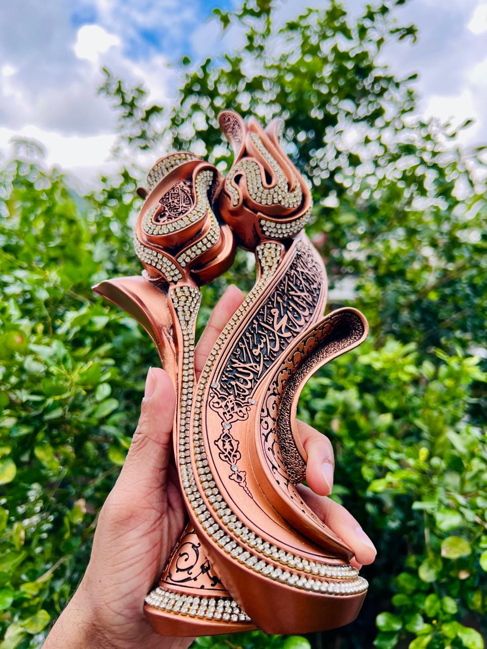 • Beautiful Islamic table decor with Rose (Muhammad) and Tulip (Allah) inscribed with Tawhid
