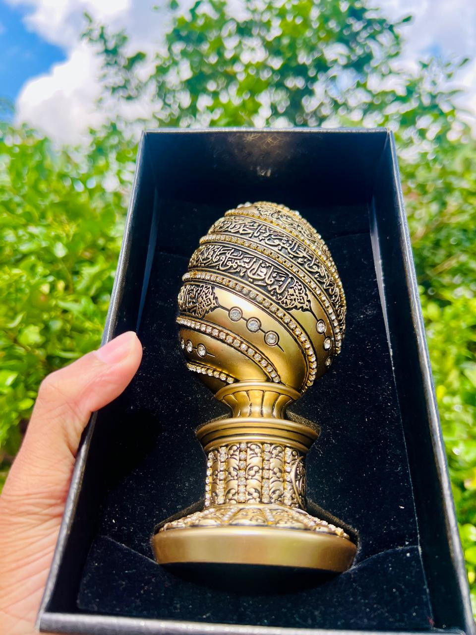 • A beautiful egg sculpture engraved with Ayatul Kursi; comes in Gold, white or Mother of Pearl color
